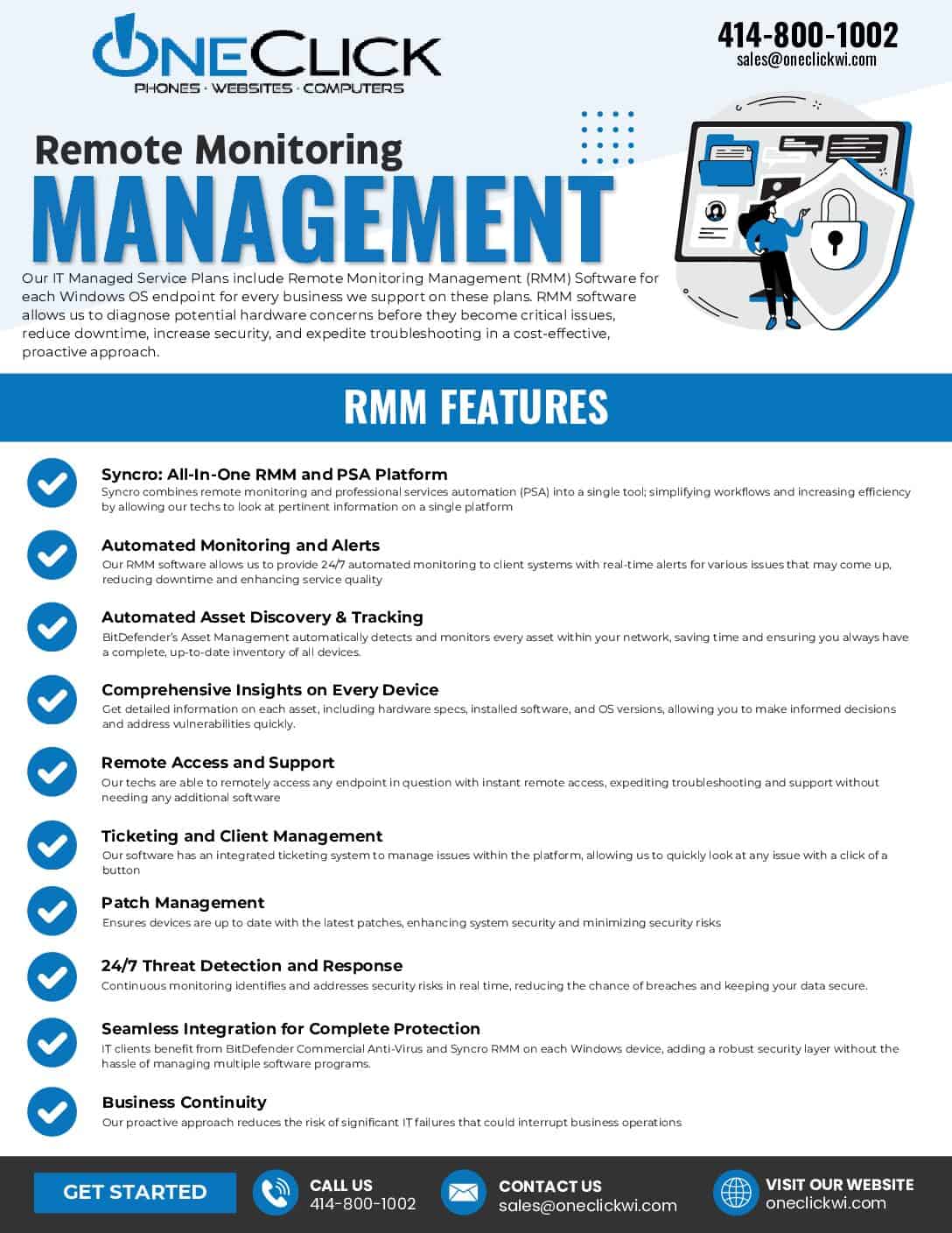 At One Click, our IT Managed Service Plans are built to simplify your technology and support your growth. Our proactive approach ensures the right hardware and software are in place from day one to reduce complexity, avoid unnecessary labor, prevent costly downtime, consolidate IT costs, and save your business real money.