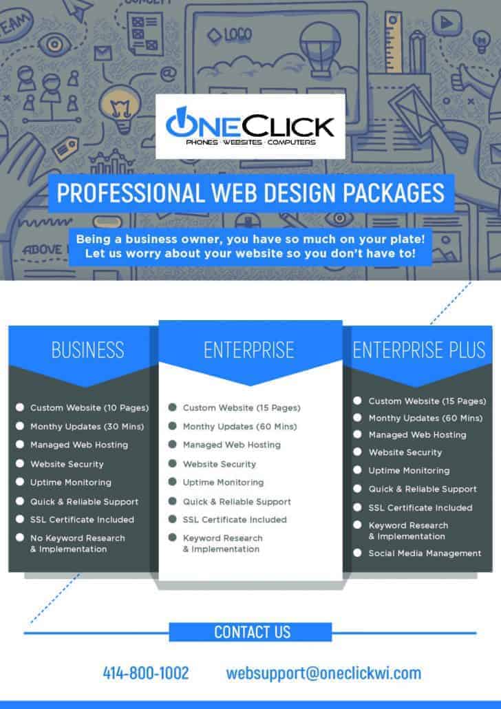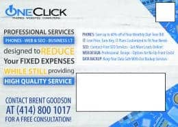 Starting up your business is a full time job – getting the graphics together for all of your flyers, postcards, website & social media posts is another one! Remove the stress of graphic design by partnering with our talented staff at One Click – you’ll be glad you did!