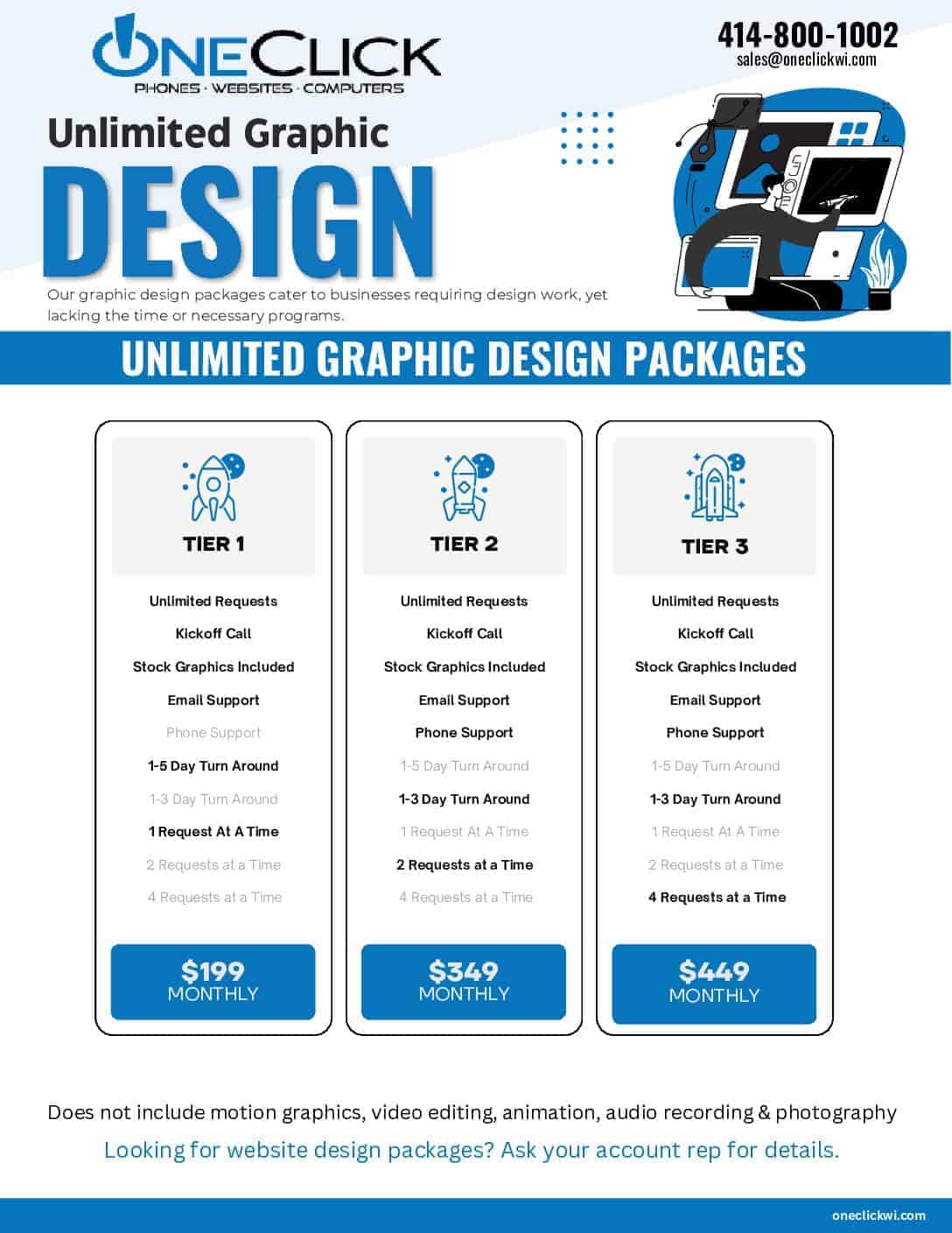 We are a local, Wisconsin business servicing businesses across the U.S. with unlimited graphic design packages. Learn why businesses are turning to us for their graphic design needs!